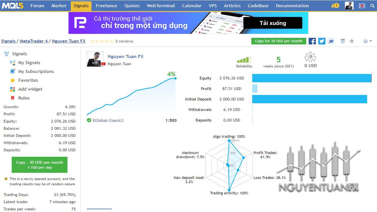 (search google ra luôn)Mọi thông số giao dịch và kết quả các lệnh giao dịch mọi người search “Nguyen Tuan FX” (với share4you nhớ tắt bộ lọc trước khi search nhé) là ra nha.Cách đánh giá 1 Robot trade forex hiệu quả:Bài viết chi tiết nói về cách đánh giá một Bot trade chuẩn hay không, tại đây: https://nguyentuanfx.com/kien-thuc/ro-bot-trade-forexChúc anh em một tháng mới 10-2021 rực rỡ nhé!