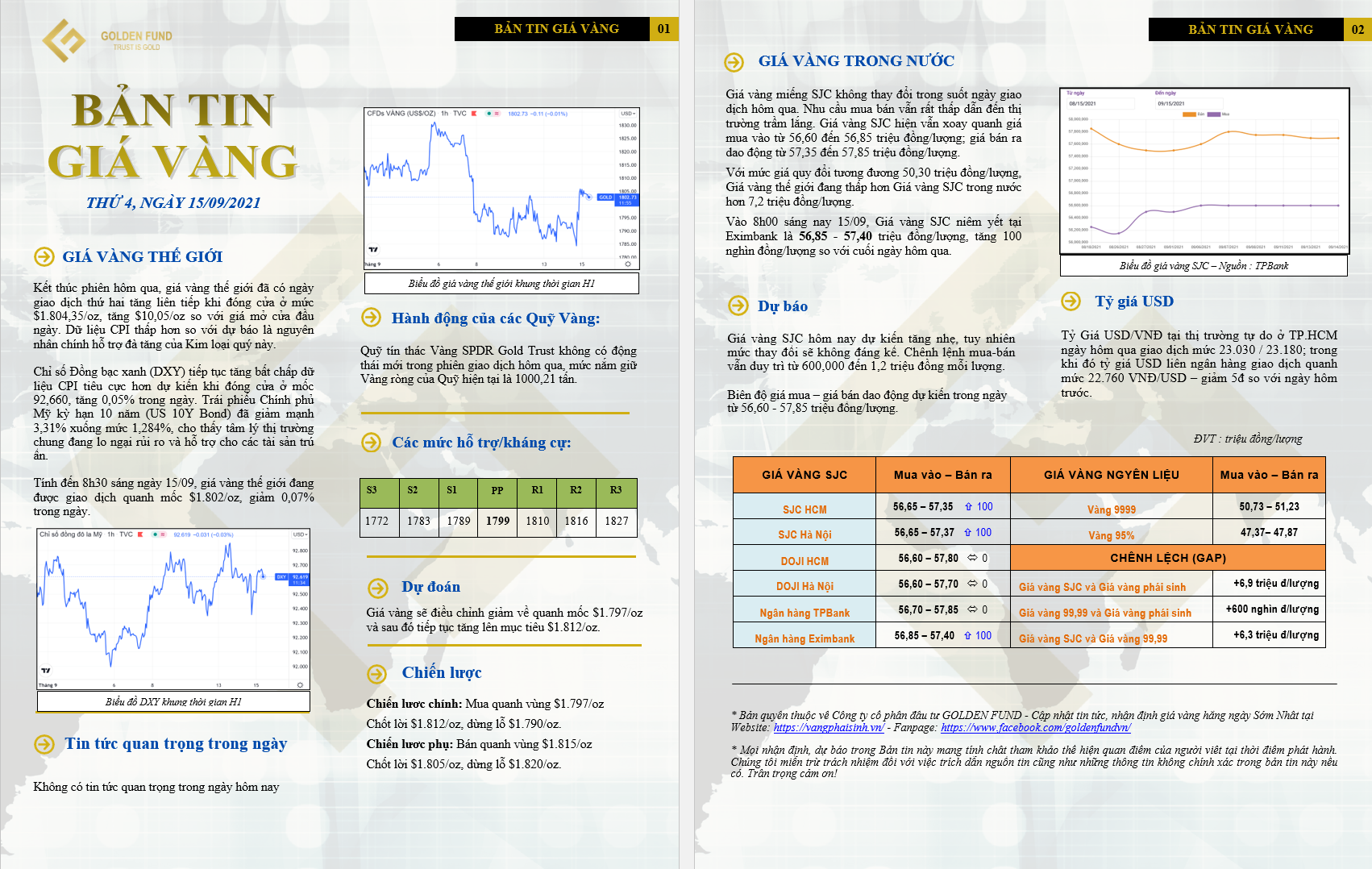 GIÁ VÀNG HÔM NAY 16/09: TIẾP TỤC ĐÀ TĂNG!Giá vàng thế giới đã có nhịp điều chỉnh giảm nhẹ về mốc $1.794/oz trong ngày hôm qua và có thể sẽ tiếp tục duy trì đà tăng mạnh sau khi dữ liệu CPI của Mỹ được công bố hôm thứ Tư.