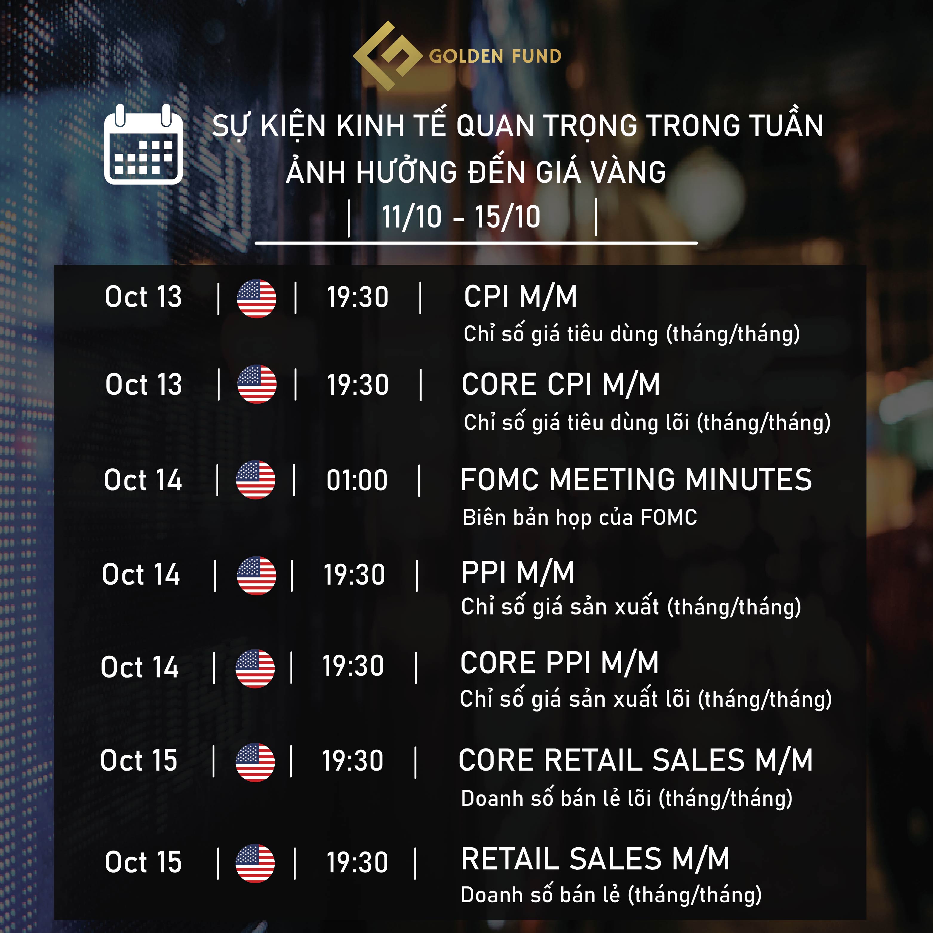 Việc thiếu các tin tức mạnh có thể khiến xu hướng điều chỉnh của đồng USD và xu hướng phục hồi của giá Vàng tiếp tục được duy trì.Golden Fund xin gửi tới Quý Nhà đầu tư tổng hợp LỊCH TIN TỨC kinh tế tuần tới (từ ngày 11/10 đến 15/10)