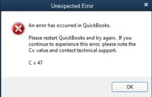 Quickbooks error C=47 might come up due to several reasons. Some of the most common reasons are: