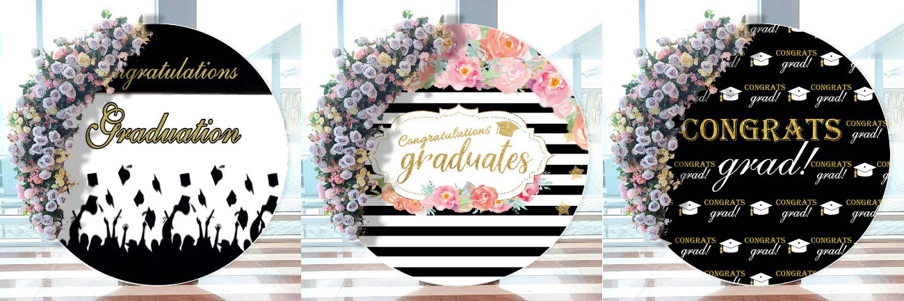 1. Bachelor Cap Black Round Graduation Backdrops For Party