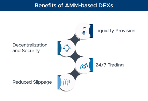 AMM-based DEXs are decentralized, reducing the risk of hacks and central point failures associated with centralized exchanges.
