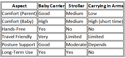 Depends on your routine. Many Indian parents prefer a mix, but carriers feel more flexible daily.