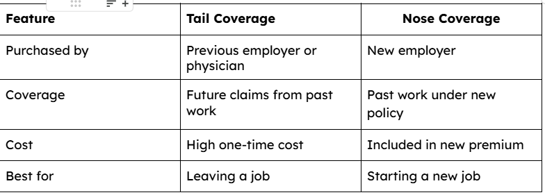 When changing jobs, you may also hear about nose coverage (prior acts coverage), which can replace tail coverage.