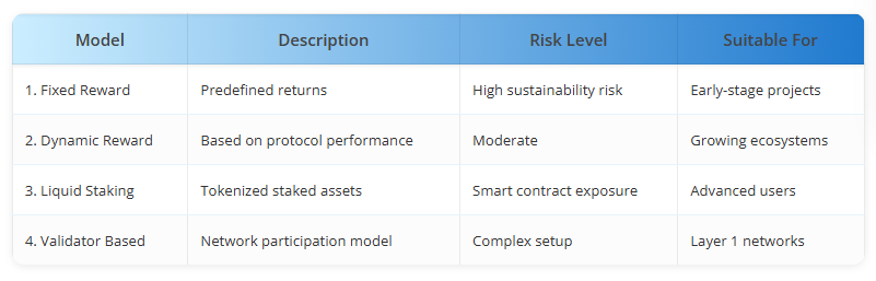 Selecting the right staking model depends on your project goals, token structure, and user expectations. Each model serves a different purpose and comes with its own trade-offs.
