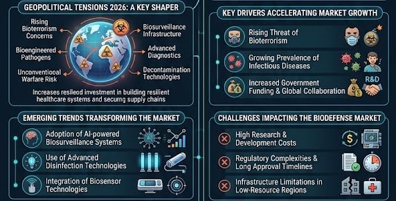 A major driver of the Biodefense Market is the rising threat of bioterrorism. Governments and defense organizations are increasingly investing in advanced technologies to enhance preparedness and response capabilities.