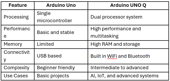 Arduino Uno vs Arduino UNO Q Comparison Table