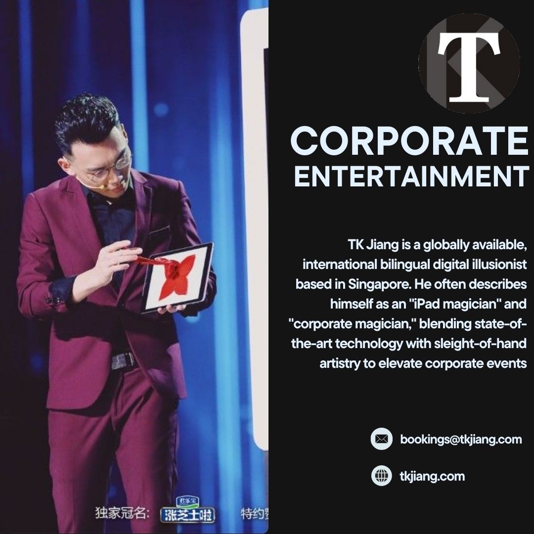 TK JIANG is a premier entertainment company specializing in high-quality magic performances for corporate events, private functions, and special occasions. Renowned for excellence in CorporateEntertainment, the company combines creativity, advanced techniques, and professional expertise to craft unforgettable experiences. With a strong focus on innovation and audience engagement, TK JIANG continues to set industry standards, helping businesses transform events into extraordinary and memorable occasions.